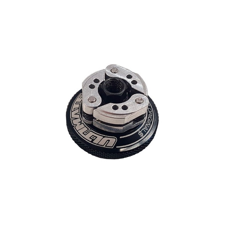 Ultima versión del embrague Compak llamada V2. Este embrague ha sido modificado para solucionar que el volante de inercia no toque con los discos de freno de algunos modelos de coche. embrague Compak V2 de aluminio B 10 con mulles de 1,0mm para circuitos mucho agarre. Fabricado en un volante de 34mm de diámetro con 3 zapatas de aluminio montadas. El embrague Compak V2 tiene con principal ventaja que para montar y desmontar no es necesario sacar las zapatas y los muelles, aflojando la tureca del embrague es suficiente para sustituirlo. Todo esto hace que sea un embrague valido tanto para el aficionado que se inicia como para el más experto que participa en los campeonatos más importantes. También disponible en otras durezas:B8.5: 0.85mm para circuitos muy deslizantesB9.0: 0.90mm para circuitos deslizantesB9.5: 0.95mm para circuitos con agarreB11: 1.1mm para circuitos con muchísimo agarre o con barro.B12: 1.2mm para la categoría de Rally game